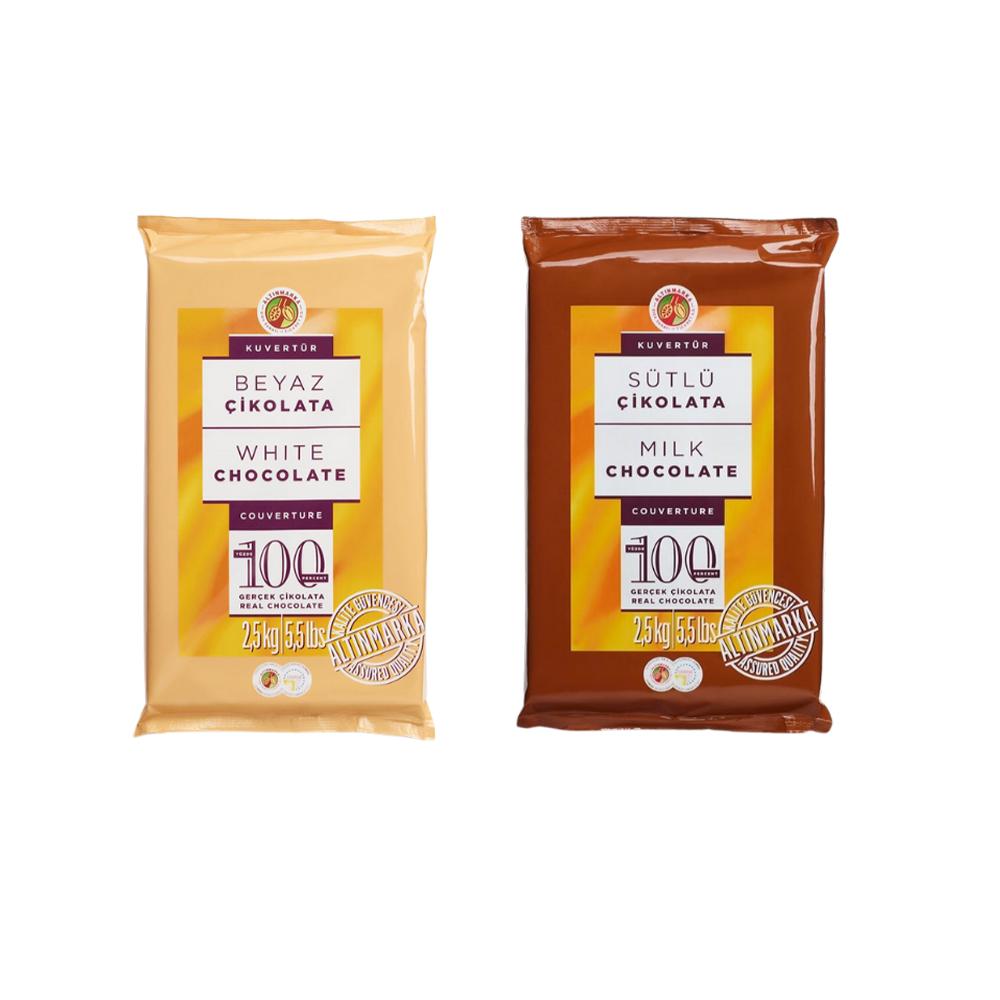 - İçerik: Fildişi ve Sütlü Çikolata Kuvertürleri